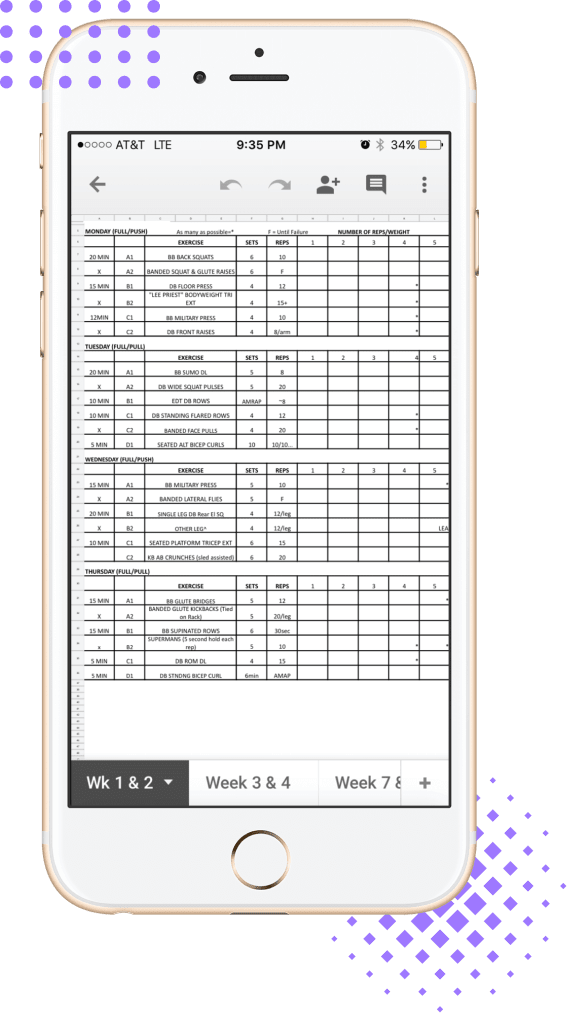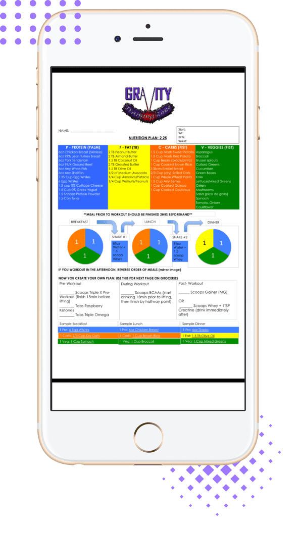 You'll get 3 workouts per week. We'll take you through the most cutting edge workouts available to help you melt fat, tone up, and see results fast. AND - You will be able to track your own progress which will help you continue to improve, avoid plateaus, and keep seeing results far past your 6 weeks.