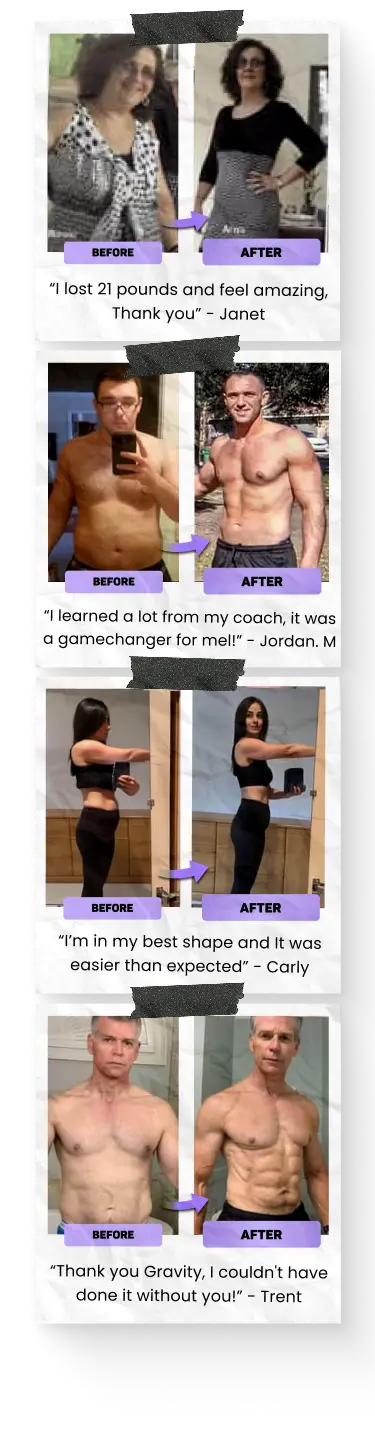 You'll get your very own meal plan. Exactly what you need, given your body, schedule, and food preferences, so it is not only doable but enjoyable. We adjust every week as needed to make sure you see results week-in, week-out.